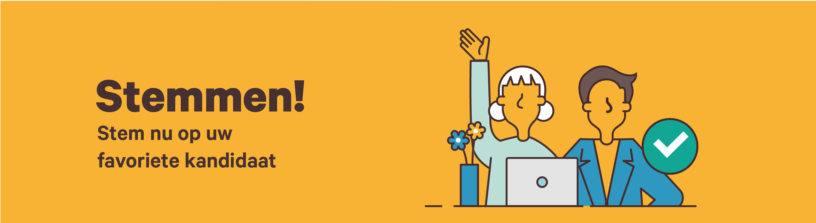 We maken stemmen zo eenvoudig mogelijk. Rond 7 mei ontvangt u uw oproep om te stemmen. Afhankelijk van hoe u de uitnodiging ontvangt, kiest u de manier die bij u past.